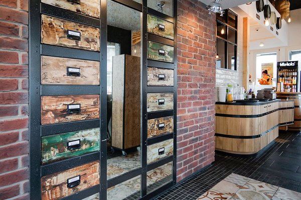 Aus einem ehemaligen Reisebüro in einem denkmalgeschützten Komplex am Bahnhof in Goslar entstand in Zusammenarbeit mit der Bäckerei Koch ein - um das Thema Reise + Nostalgie - stylisches Café mit Backshop.