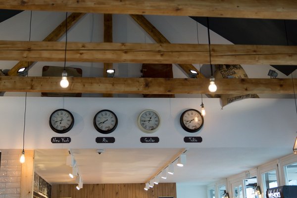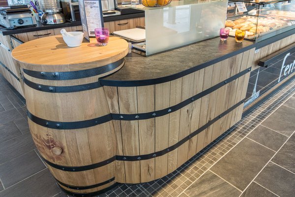 Es handelte sich um einen Komplettumbau mit allen Nebengewerken: Trockenbau, das Freilegen des alten Dachstuhls und Behandeln der Oberfläche der Balken, Fliesen neu verlegt, Sanitär neu, Elektrik/Beleuchtung, Malerarbeiten. Außerdem entstand eine gemütliche Kaminecke mit einem Zierkamin. Die Tresenfront ist bestückt mit einer Glasplatte mit integriertem, beleuchteten Logodruck. Der Korpus besteht aus Echtholzfurnier Eiche , ein Eiche-Weinfass ist im Tresen integriert.
