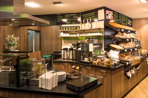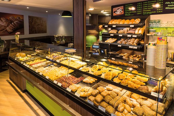 Aus einem ehemaligen Eiscafé entstand eine 100m2 große, moderne Filiale für die Bäckerei Moock. Die Kundschaft genießt ein vielseitiges Angebot vom Frühstück, Mittagstisch mit Pasta, frischen Salaten, Snacks, bis zur Kaffeezeit mit leckeren Backwaren und Eis.