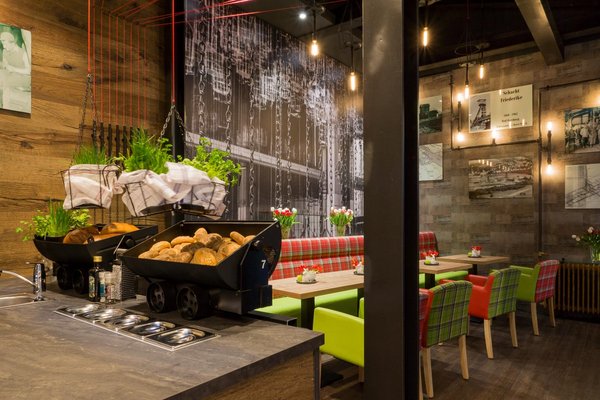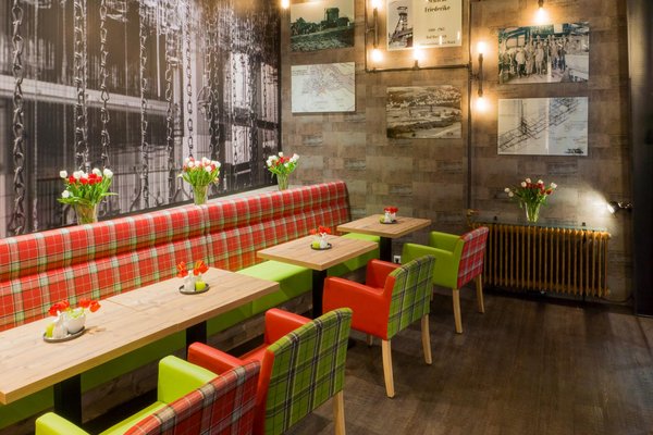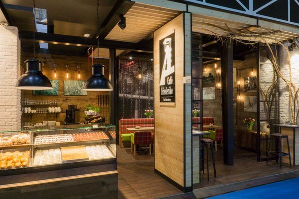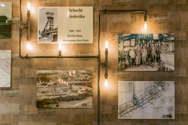 Mit dem Messebauprojekt Café Friederike haben wir die vergangenen Zeiten des Erzabbaus im Harz begreifbar gemacht. Die Einrichtung des Cafés wurde im Stil einer Bergwerkskaue in Szene gesetzt und mit einer Bilderreihe eines Zeitzeugen, mit Originalaufnahmen plakativ untermalt.